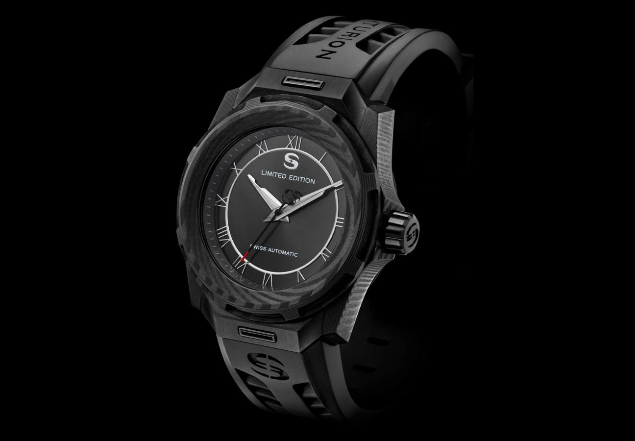 As part of a suite of recent releases, the SW-C3, which we’re particularly drawn to, is a sleek piece, with a hit of understated finesse that comes courtesy of a thin black carbon-fibre case with an iridescent grain texture, and a black sunbrush dial. Lettering is highly polished, there’s a machine-printed and hand-finished chapter ring, and, on the titanium caseback, you’ll find the label’s ‘S’ logo, as well as a radial-brush finish.