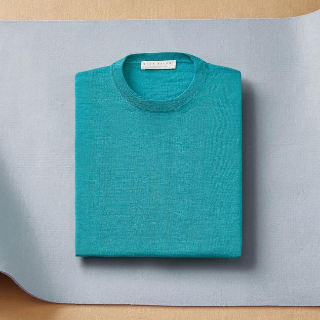 Luca Faloni now offer two different garments in this pioneering fabric; a soft crew neck jumper and polo.