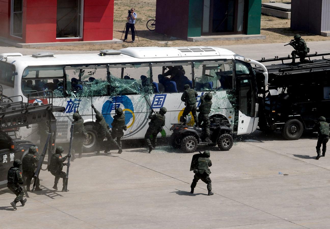 The SLCU show off their skills at handling hijacking situations in Beijing.