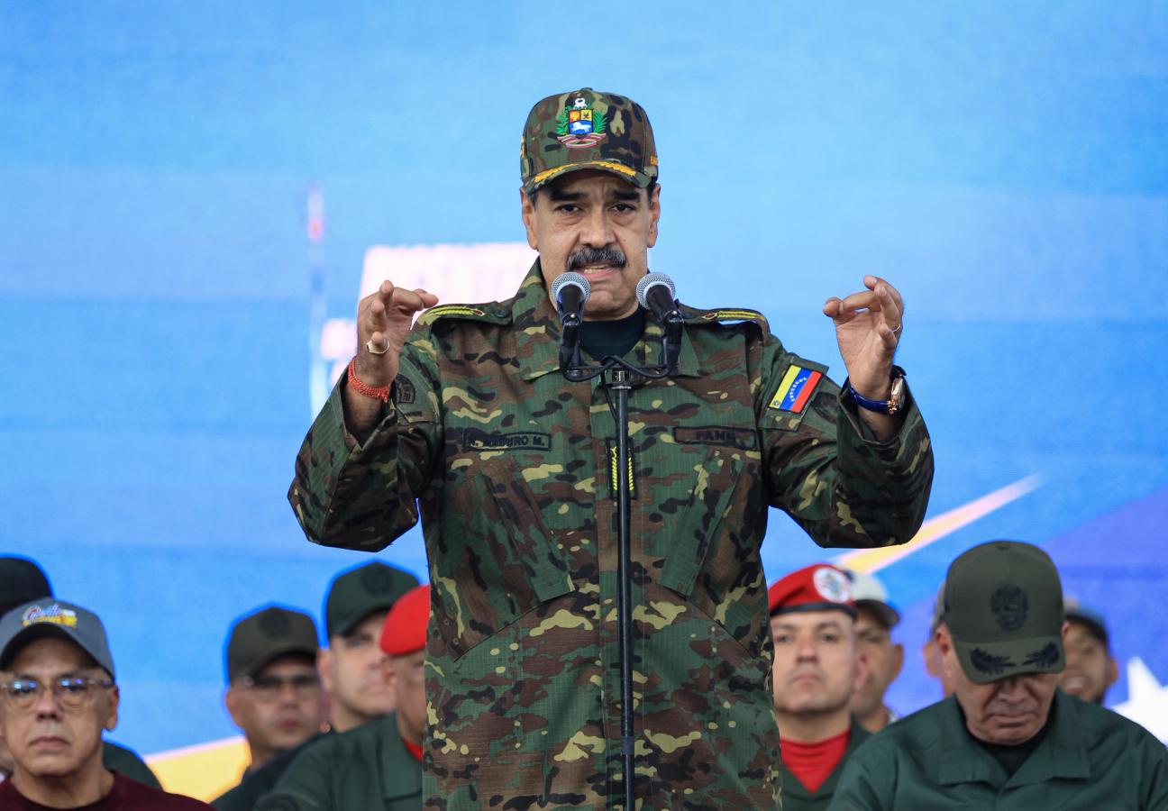 Former President, Nicolas Maduro, speaks at a military ceremony in Caracas. The United States recently designated the "Cartel De Los Soles" (Cartel of The Suns) as a foreign terrorist organisation, a group allegedly led by the former president.