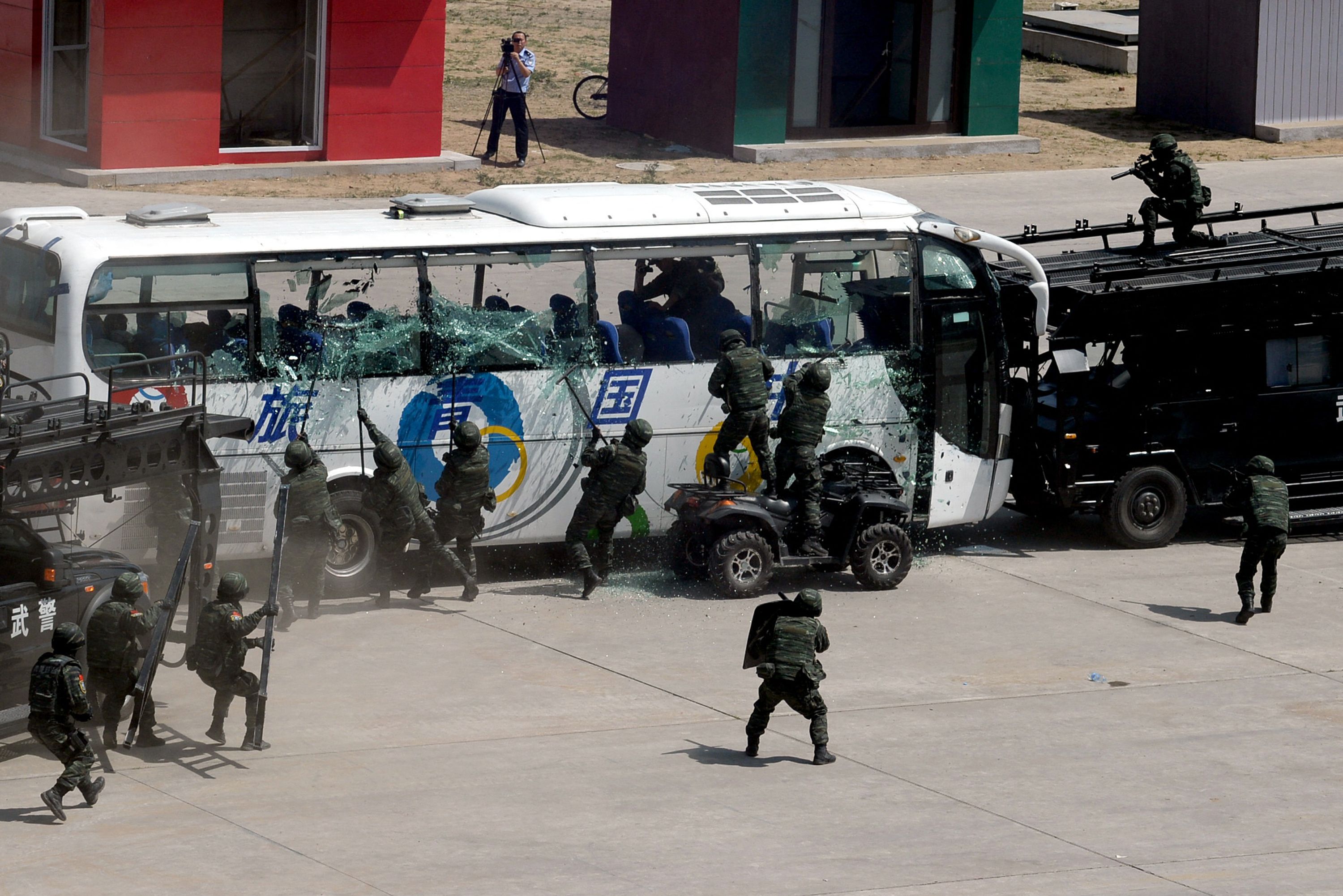 The SLCU show off their skills at handling hijacking situations in Beijing.
