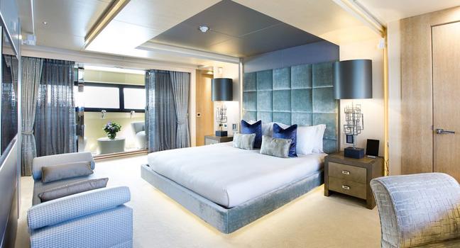 Luxury accommodation for 10 charter guests has a contemporary Scandinavian or Californian feel making it ideal for younger clienteles. Including a full beam master suite with private balcony, two double staterooms and two twin staterooms, there is plenty of space and rooms are masculine but softened with designer furniture.