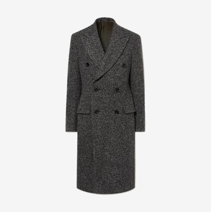Because a good overcoat, both wide in its shoulders and long in its length, can bulk up your silhouette significantly. Something like Thom Sweeney’s slightly structured option, in heavy twill herringbone. Or this deep navy double-breasted coat from Club Monaco. To really command presence, however, follow in Brando’s footsteps — and wear an extra-long, extra-tweedy coat, such as this from Richard James.