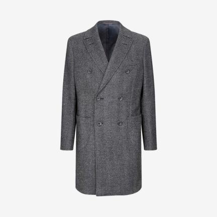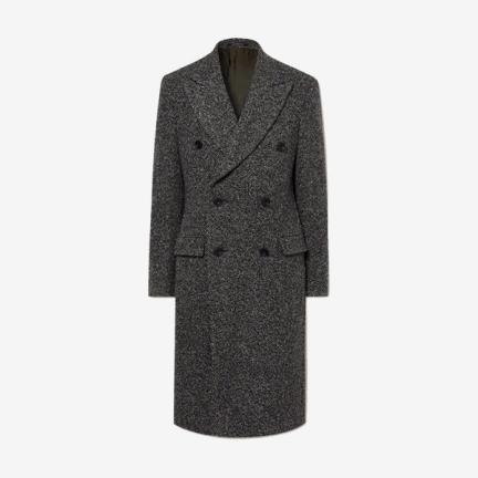 Because a good overcoat, both wide in its shoulders and long in its length, can bulk up your silhouette significantly. Something like Thom Sweeney’s slightly structured option, in heavy twill herringbone. Or this deep navy double-breasted coat from Club Monaco. To really command presence, however, follow in Brando’s footsteps — and wear an extra-long, extra-tweedy coat, such as this from Richard James.