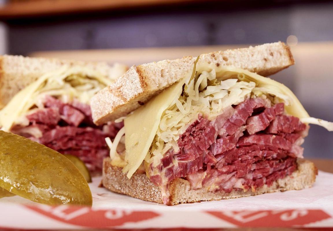 Monty’s Deli — Reuben, Piled high with salty, sweet, peppery pastrami, and spilling over with unctuous dressing and tart sauerkraut, this is two fists of lunchtime joy. Old Spitalfields Market, 16 Horner Square, E1 6EW