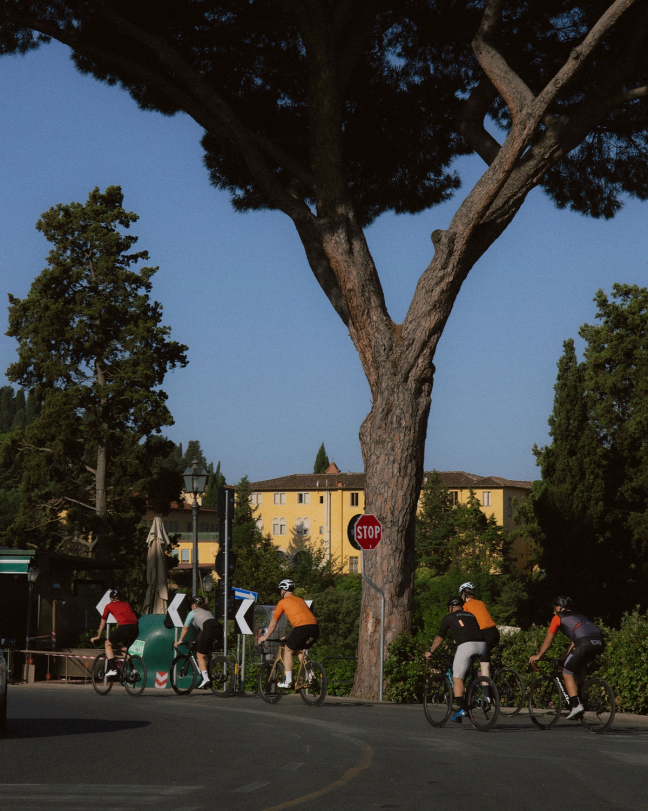 With the Tour de France starting from Florence in a couple of weeks, Cervélo took the opportunity to kick off the summer with their inaugural morning ride event on Wednesday 12th June, held in partnership with Gentleman’s Journal. Cyclists – including photographers Adam Katz Sinding and Aidan Parisi, Simon Crompton of Permanent Style, menswear influencer Andreas Klow and founder of Angel Bespoke Angel Ramos – rose early to meet for a quick caffeine fix at Florence’s stunning Sina Villa Medici, before setting up bikes and heading off on their morning ride, which took them across the Ponte Vecchio bridge and through the hills on the other side of the river. There was an obligatory pit stop at Piazzale Michelangelo to take in the views of the Florence cityscape drenched in morning sunlight, before riders cycled through the streets of Florence, crossing a number of famous bridges, back to the hotel for a well-deserved breakfast of bacon and eggs.