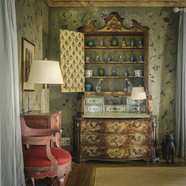 The nine spacious bedrooms, many boasting wraparound verandas and huge, en-suite bathrooms, speak to the palatial mood of the house. Their walls are alive with ornate, handpainted, florid murals and exquisite wallpaper, while gilded furniture and classical screens are reminiscent of Versailles or the great palazzos of Como.