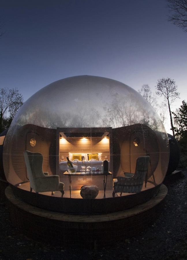 So you know the smart thing to do: Leave the camping to Bear Grylls and his roadkill suppers, and turn instead to the bubble domes of Finn Lough in Northern Ireland. These distinct pods loom from the gloom between the trees like something out of a sci-fi blockbuster — and are designed with transparent walls for unencumbered views of both sky and surroundings.