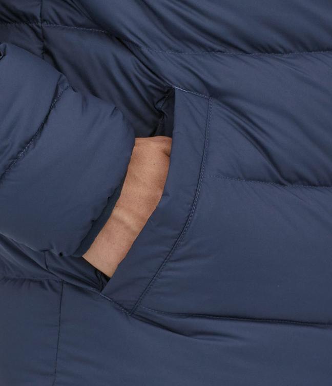 Any hidden features? Few to speak of. But then this is a stripped-down, pared-back option. It’s a lightweight winter jacket, hip-length and quilt-through but finished with an unobtrusively-cut curved hemline. Portable and packable, it won’t get in the way.