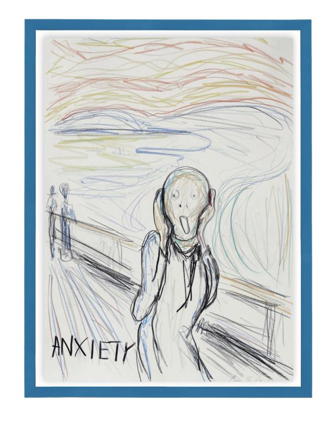 CB: We’re no strangers to therapy. We’ve both struggled at various times in our lives. In fact we were both guests of the same psychiatric unit a couple of years apart. An artist friend of ours had talked about this New York art therapist who used to be involved with a Mexican Cartel but then had a kind of religious experience whilst looking at a stolen Rembrandt and became an art therapist. He sounded cool so we did some sessions with him over zoom. He told us to make sixty second drawings but to ignore our conscious brain which would try to control the process, and let our unconscious mind direct the drawing. It was funny because the first thing both of us drew was a dinosaur. After a few sessions we had a bunch of these sketches that looked like they were made by people who’d escaped psychiatric units, which they kind of were. They just felt honest and fresh and sort of alive in this really special way, kind of vulnerable or something, so we decided to explore and develop them a bit further and ended up with this body of work.