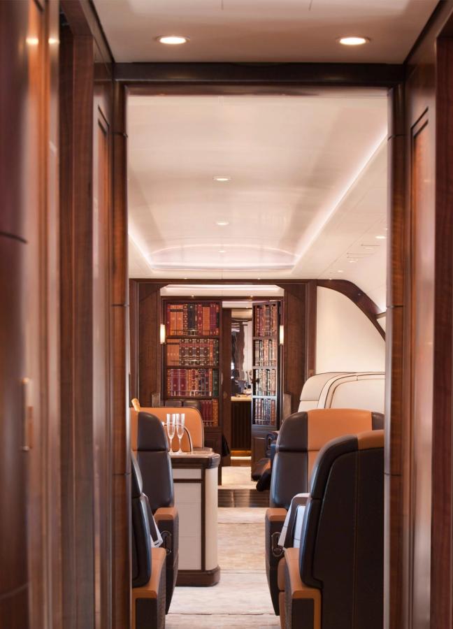 The Atlas Jet, from Winch Design, features elements from the classic gentleman’s club — bookshelves along the walls, plush leather chairs in which to get lost, and secret concealed doorways through to different areas of the plane.