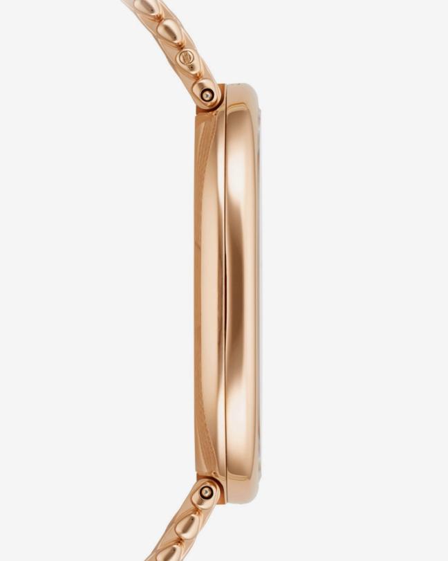 The current, large-sized Golden Ellipse Reference 5738 is now available in platinum (£53,090) and also on a beautifully crafted gold-metal bracelet for the first time. Composed of links set in fine rows reminiscent of chain bracelets, this supple, elegant chain-style bracelet in rose gold pays a fine tribute to the 1970s heyday of the watch.