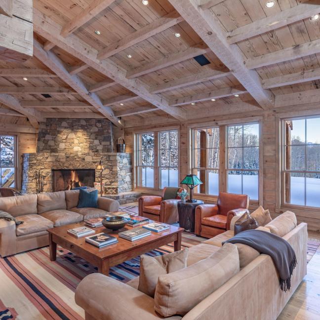 Cruise didn’t skimp on comfort, either. Skiers and outdoor adventurers will journey back from their outdoor activities at the end of the day and be greeted by an oasis of softly-lit warmth, with those windows glowing beacons of golden light in dark Colorado evenings. Enormous fireplaces, round stone walls and multiple cosy corners only add to the snugness, providing welcome, warming respite from even the harshest weather conditions.