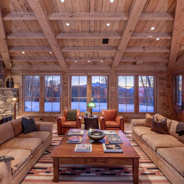 It’s surprisingly light for a log-clad property. The generous windows allow for an influx of Colorado sunshine, and the lavishly proportioned rooms afford the place a general air of open-plan living. And there’s another benefit to those ample windows: picture-perfect panoramas every time you glance outside.