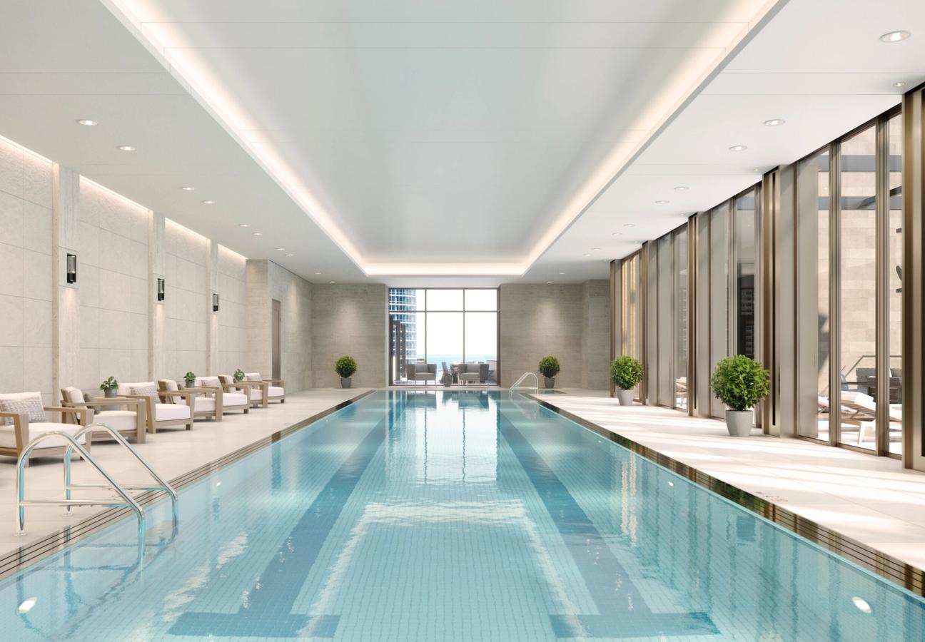 Amenities-wise, Tribune Tower Residences is also home to a state-of-the-art fitness centre in which one can find a wide array of equipment that covers cardio and strength conditioning. Notably, the 75-foot indoor pool is the perfect location to start or finish your fitness session, and the pool sundeck, flush with city and river views, is often the choice spot from where to relax post-workout. The spa, set with steam rooms, saunas, and private treatment rooms for massages, rounds out the fitness-and-wellbeing experience, meanwhile a sports simulator and a large putting green offer further recreational opportunities for residents to enjoy with others.