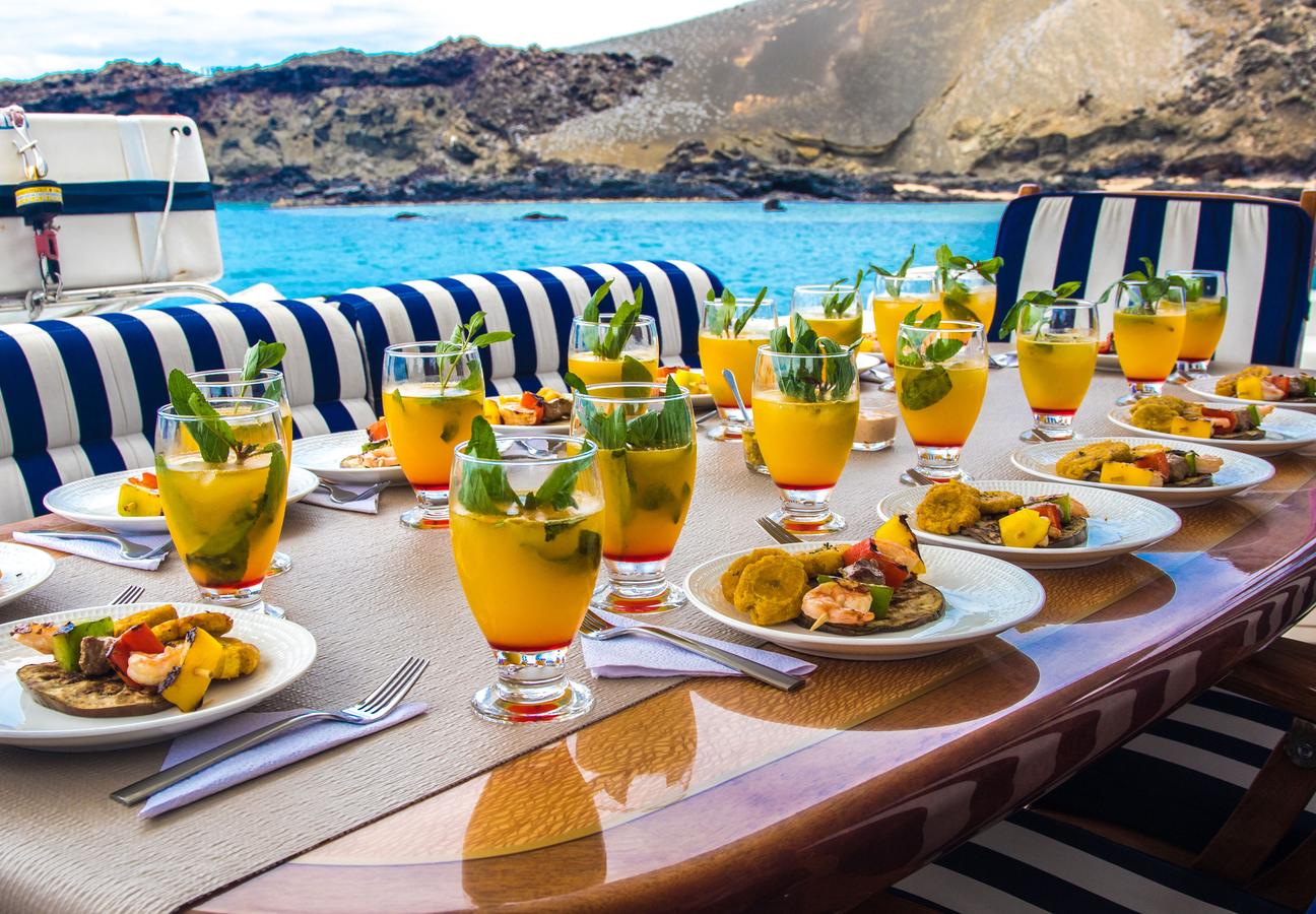 Once here, you’ll witness the likes of Santa Cruz, South Plaza, North Seymour, and Española, home to the waved albatross. Snorkelling will be a daily staple, as will swimming among sea lions and Galápagos penguins – and, when back on board, chef Cristian Puente’s vibrant courses of Ecuadorian ceviche will jolt you with further life.