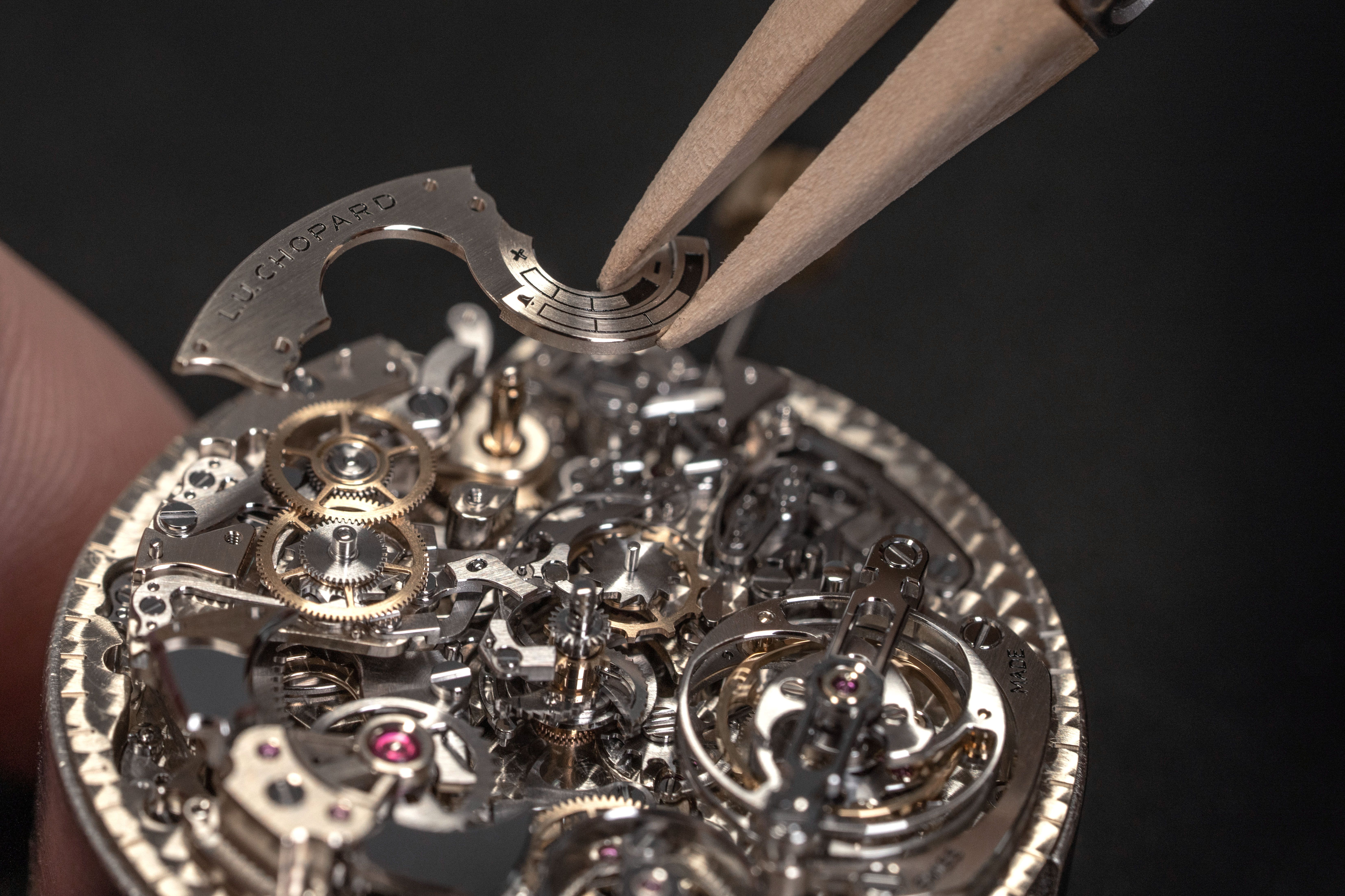 The Grand Strike’s dazzling jigsaw of micro-mechanics might seem like a fussy, bug-prone endeavour – and striking clockwork is notoriously delicate – but in the spirit of L.U.C’s very modern approach to advancing ‘complicated’ horology, the big focus with the Grand Strike has been on real-world practicality. Nothing less than five new patents have been granted, all of which ensure exactly that.