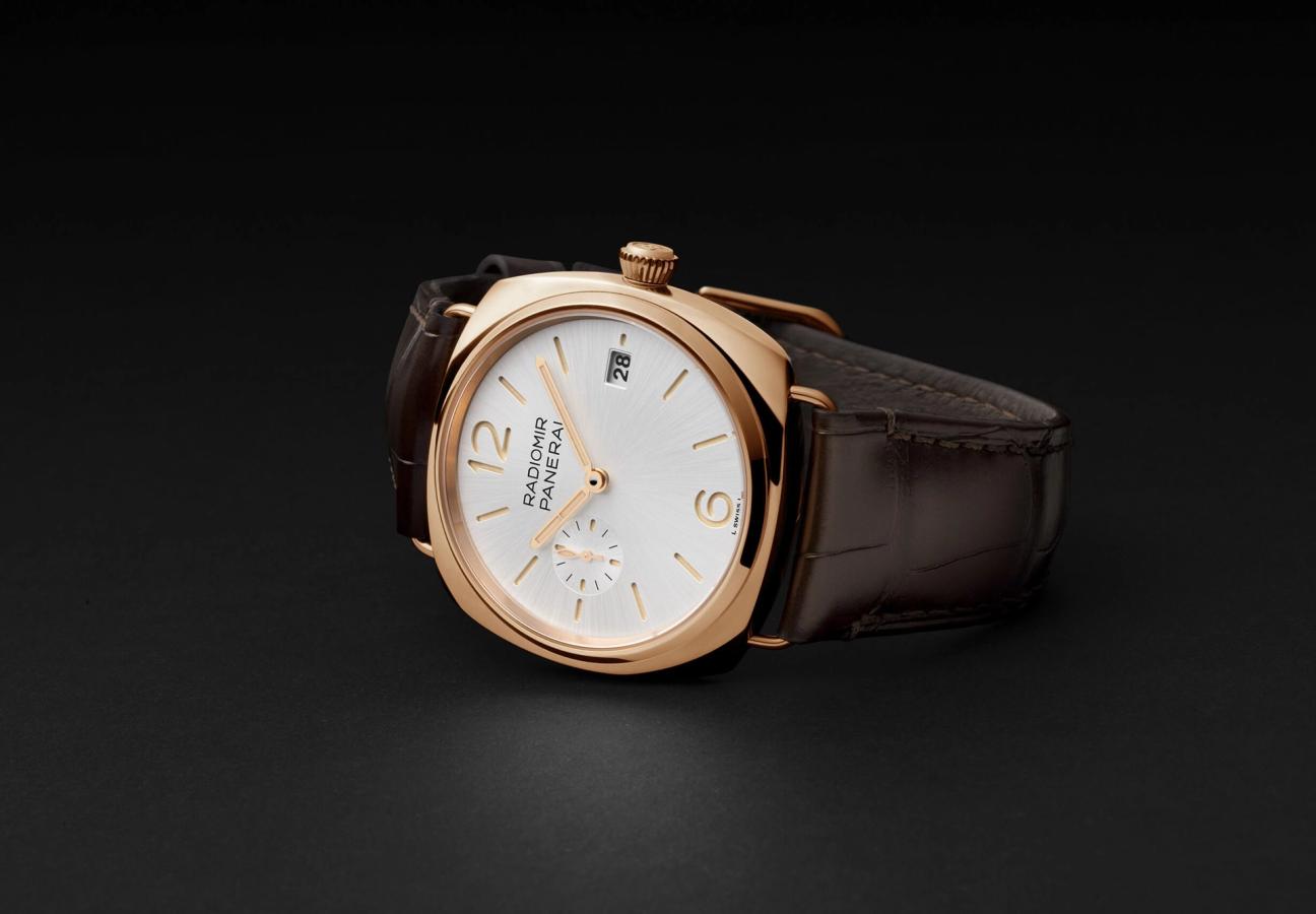 Having scaled down its models for a while, Panerai has now looked to make its Radiomir, which was produced for the Royal Italian Navy in the 1930s, smaller. The label, famed for its large dimensions, often ranging from 44–47mm, has taken the historic model and shrunk it to 40mm, hence its model name (‘Quaranta’ means 40, in Italian). The case in the trademark Goldtech, a mix of copper and platinum, results in a gold sheen with subtle streams of red.