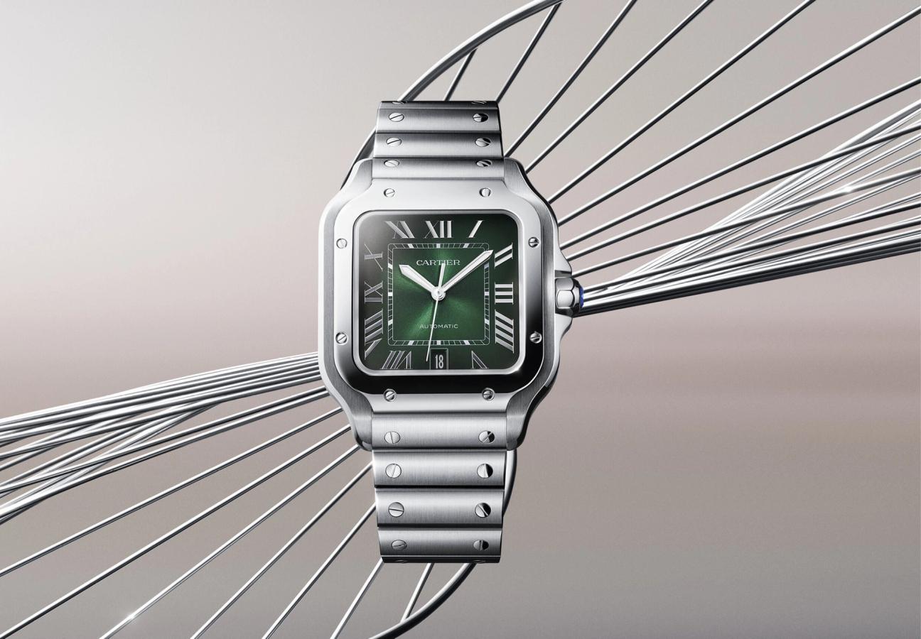 Once the French label’s solution to the stainless-steel sporty styles of a previous era, the Santos De Cartier was given a glow up in 2018 and has seen several reworkings since. The latest doesn’t divert too far away from its latest predecessors, with 41.9×35.1mm dimensions in the medium option, and the rounded feel is still there, despite its squared silhouette, but the update comes in the form of a green dial with a gradient effect. Though this particular trend may have long passed, it’s still a colour that will make competitors full of envy.