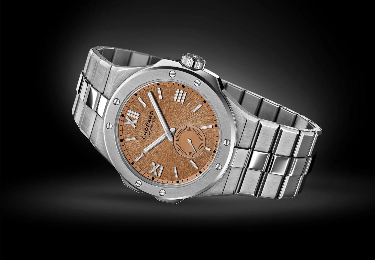 Although it’s the brand-new Alpine Eagle, at first glance, it doesn’t look too different, perhaps only as if it’s been given the salmon-dial treatment. But more changes can be found beneath its pinky-orange face. The case itself, for example, is only 8mm thick – and the whole 41mm model, and its integrated bracelet, have been created using 70% Lucent Steel, an alloy made from recycled metal. It’s a testament to the brand’s push for sustainability, and a percentage of recycled metal that the watchmaker intends to increase to 80% by the end of the year.