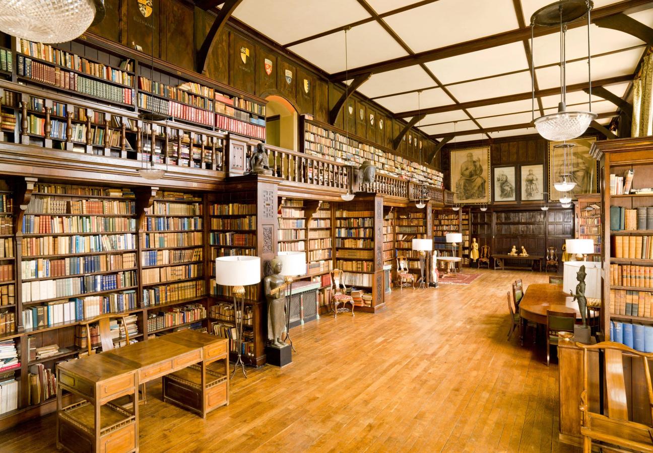 The property’s exceptional library, 70ft in length and 30ft in height, was added to the house in around 1890 by Coleridge, the Lord Chief Justice, and architect William Butterfield, a favourite of Queen Victoria. Taking up the entire ground floor of the west wing, its collection now extends to roughly 22,000 books, all housed in a range of oak carved cases.
