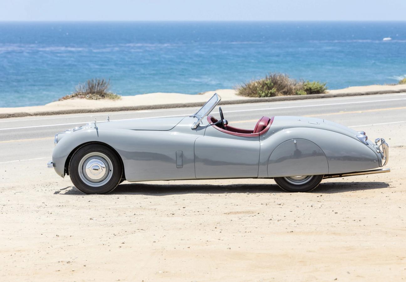 Add to that list the Jaguar XK120. Debuted at the 1948 Earls Court Motor Shows — just a few short months after its conception and construction — this particular model now resides on the sandy blue coastline of the United States. And it looks like it’s lived there all its life.
