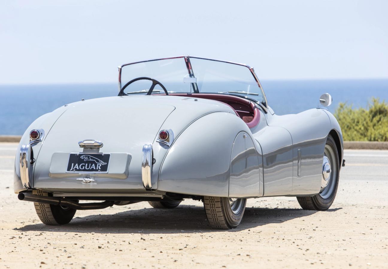 This particular model, up for auction at Bonham’s, first roared to life inside Jaguar’s Coventry facility in September of 1951. Originally finished in Pastel Blue — with a fawn convertible top — this left-hand drive Roadster was destined for the US market and was dispatched to Hoffman Motor Car Company in New York just three weeks later.
