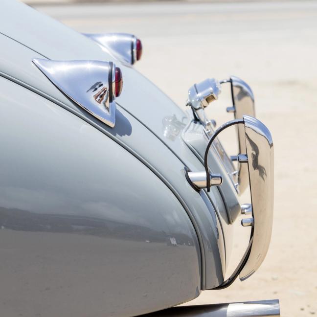 We like the rich, red interior almost as much as the rear wheel covers. Restored in demure Dove Grey paintwork, it’s a match made in automotive heaven, and the lighter colour suits the sleek curves of the bodywork.