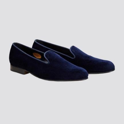 If you’re wearing a navy tuxedo, you likely already fancy yourself as a fashionista. It’s a subtle spin on the classic look, but one that nods to fellow partygoers that you keep your finger on the sartorial pulse and enjoy standing out from the crowd. Of course, to go with that navy dinner suit, you need navy slippers.
