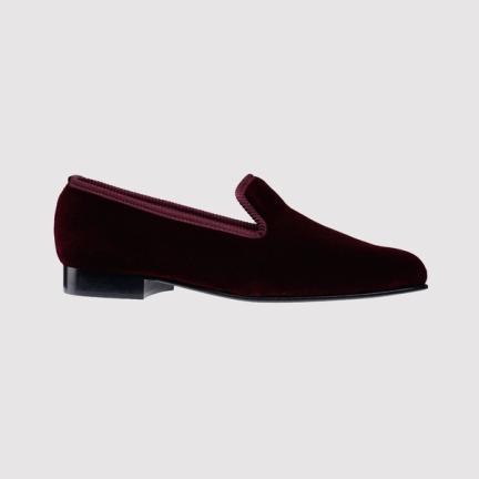 But don’t go too bright. Crockett & Jones have the right idea, with their dark burgundy velvet Plain Alberts. Or Ede & Ravenscroft, whose Knightsbridge slippers in a questionably named shade of ‘aubergine’ feature a buffed leather heel. Or, if your tastes are a little more creative, New & Lingwood offer a bespoke service on their velvet dress slippers.